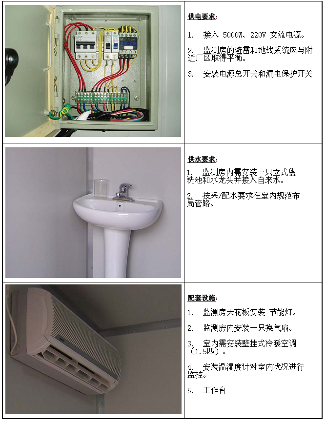 (7) 室內裝有冷暖空調,配有2kg以上壓力的自來水接口。